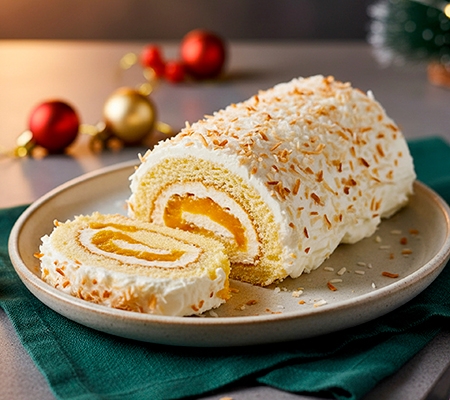 BÛCHE de NOËL à la MANGUE, NOIX de COCO et RICOTTA riche en protéines naturelles