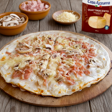 FLAMMEKUECHE JAMBON, CHAMPIGNONS et QUATTROCENTO